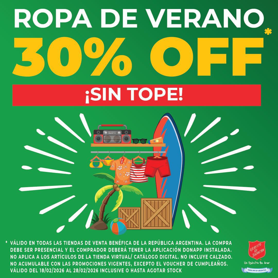 Creamos esta promo pensando en tus necesidades, ante un verano que pareciera seguir manteniendo altas temperaturas hasta su fin, con un descuento directo del 30% y sin tope, para que el ahorro sea por el total de tu compra.